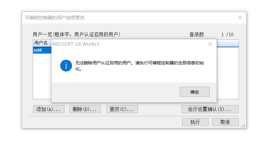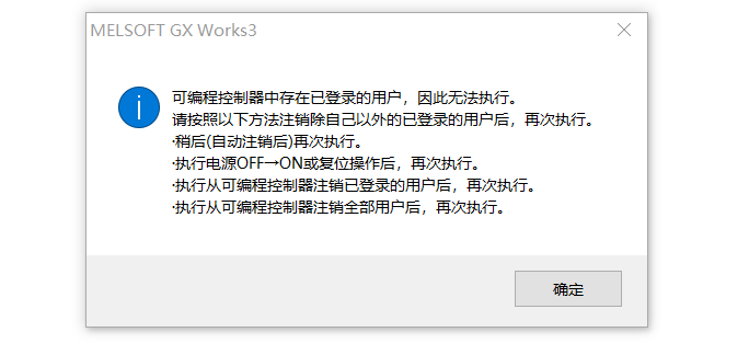 當(dāng)有其他用戶在登錄中時,無法初始化可編程控制器??芍貑PU電源,再登錄認(rèn)證啟用的口令就能成功初始化