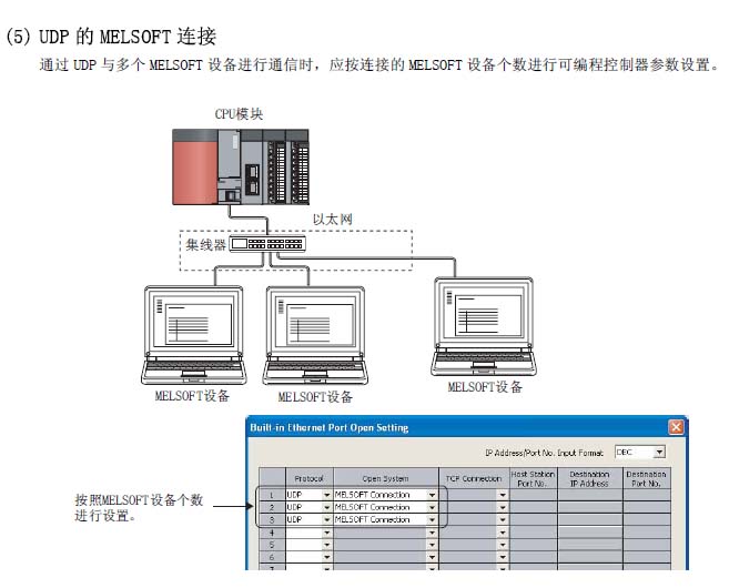 用到幾個GOT,就選設置幾個UDP。三菱QnUCPU用戶手冊(內(nèi)置以太網(wǎng)端口通訊篇)說明如下